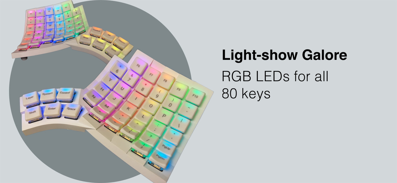 Change layouts, adjust your typing angle, add layers or function keys, swap out keycaps and switches—with Glove80, the possibilities are nearly endless.