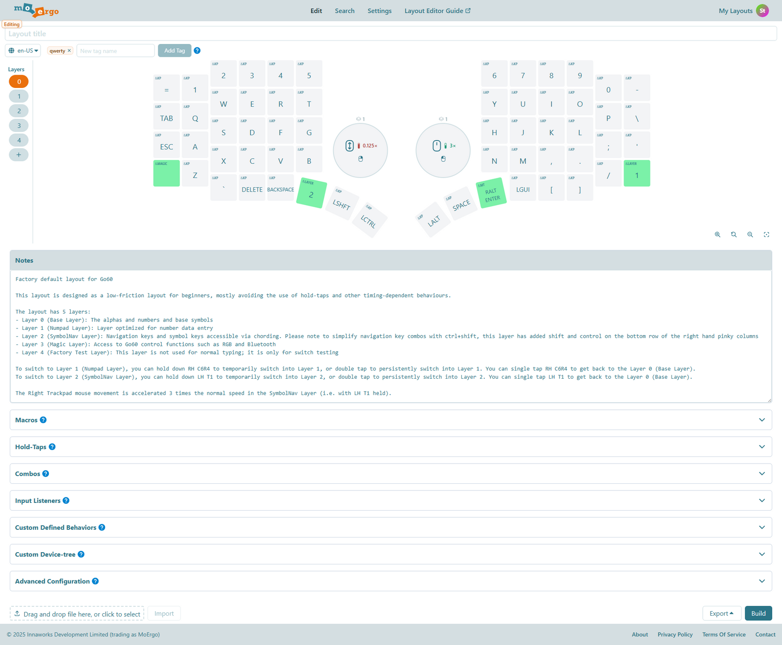 If you are an existing Glove80 user, you can convert your Glove80 layout to Go60 using the Glove80 Layout Editor.